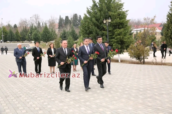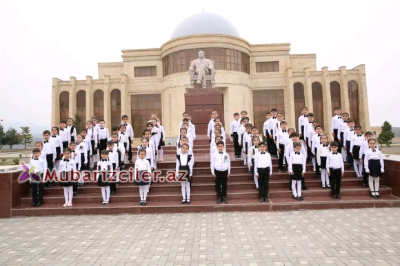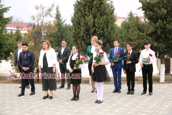 Tədbirin giriş hissəsində ümumilli lider Heydər Əliyevin abidəsinin önündə şagirdlər xor şəklində Azərbaycan Respublikasının Dövlət Himninin ifa ediblər.