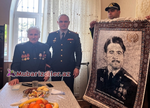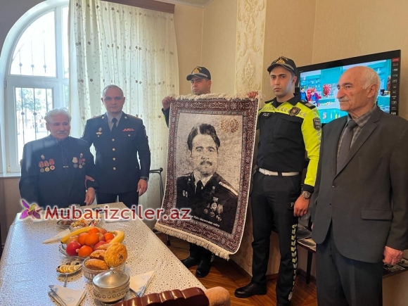 Sonra asayiş keşikçiləri üzərində polis straşınası uniformasında şəkili həkk olunmuş, xüsusi əl işi olan xalçanı yubilyara təqdim ediblər.