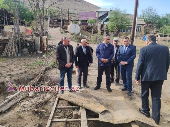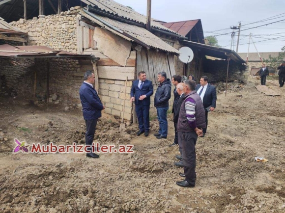 İcra başçısı baş verən təbii fəlakət nəticəsində Gürzallar kəndində ziyan dəymiş fərdi təsərrüfatlara baş çəkib - FOTO 0