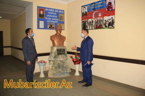 Məktəbin giriş foyesində Ulu Öndər Heydər Əliyevin Prezident İlham Əliyev cənablarının və daim Təhsilimizə diqqət və qayğı göstərən Mehriban xanım Əliyevanın misilsiz xidmətlərini əks etdirən foto-guşə nümaiş etdirilmişdir. Bununla yanaşı 1-ci Qarabağ,Aprel və Tovuz doyüşləri, Vətən Müharibəsi Şəhidlərinin keçdiyi şərəfli döyüş yolundan bəhs edən foto-sərgidə öz əksini tapmışdır. Məktəbin bütün siniflərinə Şəhidlərimizin adı verilərək şagirdlərə Şəhidlərin şəkli olan döş nişanları təqdim edilmişdir.