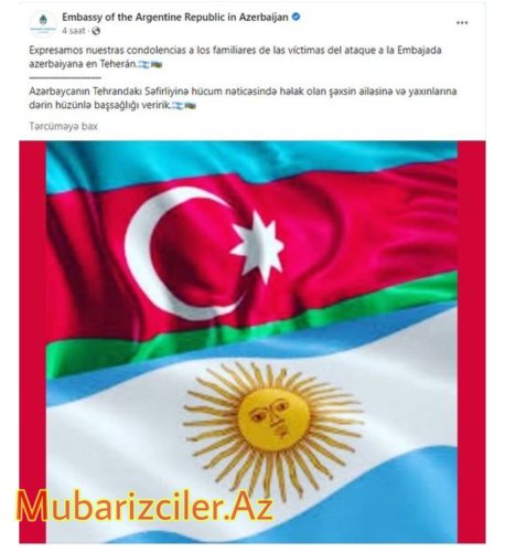Argentinanın Azərbaycandakı səfirliyi Tehranda baş verən terror hadisəsi ilə bağlı paylaşım edib.