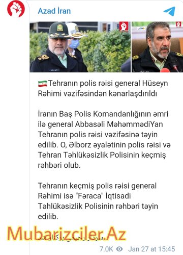 Tehranın keçmiş polis rəisi general Rəhimi isə “Fəraca” İqtisadi Təhlükəsizlik Polisinin rəhbəri təyin edilib.