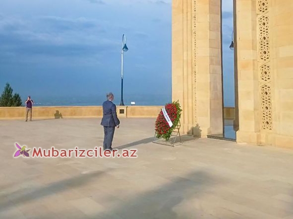 Qonaq daha sonra Şəhidlər xiyabanına gedərək ölkəmizin müstəqilliyi və ərazi bütövlüyü uğrunda mübarizədə canlarından keçmiş qəhrəman Vətən övladlarının məzarlarını ziyarət edib, “Əbədi məşəl” abidəsi önünə əklil qoyub.