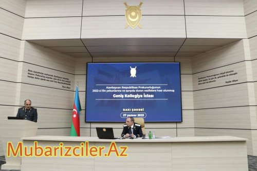 Yanvarın 27-də Azərbaycan Respublikasının Baş Prokurorluğunda Mərkəzi aparatın, Respublika Hərbi, Naxçıvan Muxtar Respublikası, Naxçıvan Muxtar Respublikası Hərbi və Bakı şəhər prokurorluqlarının rəhbər heyətinin, rayon (şəhər) və ərazi hərbi prokurorlarının iştirakı ilə prokurorluq orqanları tərəfindən 2022-ci ildə görülmüş işlərin vəziyyəti və qarşıda duran vəzifələrin müzakirəsinə həsr olunmuş Geniş Kollegiya iclası keçirilmişdir.
