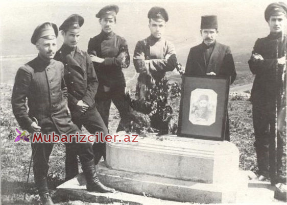 (Abbas Səhhət şagirdləri ilə Sabirin məzarının başında)