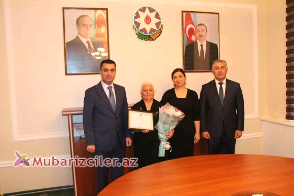 Görüş zamanı şəhid anasına Şəhər İcra Hakimiyyətinin Fəxri Fərmanı təqdim edildi.