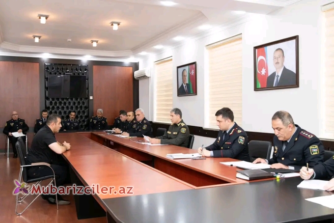 Səfər çərçivəsində general-polkovnik V.Eyvazov bölgə üzrə polis orqanlarında sıravi və kiçik rəis heyətinə xidmətə qəbulla bağlı sıra baxışı keçirib.