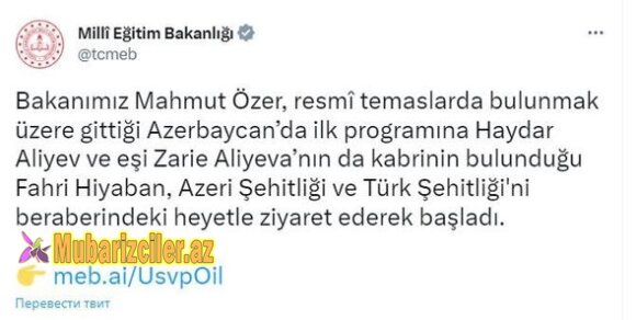 Mubarizciler.az-ın məlumatına görə, bu barədə Türkiyənin təhsil qurumunun “Twitter” hesabında xəbər verilib.
