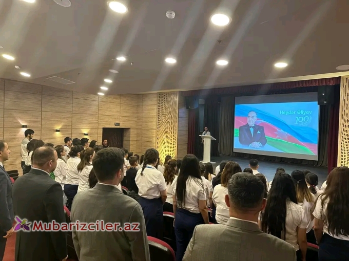 Mubarizciler.az xəbər verir ki, Tədbir başlamamışdan öncə Dövlət Himni səsləndirilib, Ulu Öndər Heydər Əliyevin və torpaqlarımızın azadlığı uğrunda canlarını qurban vermiş şəhidlərimizin əziz xatirələri bir dəqiqəlik sükutla yad edilib və Ümummilli Lider haqqında film nümayiş olunub.