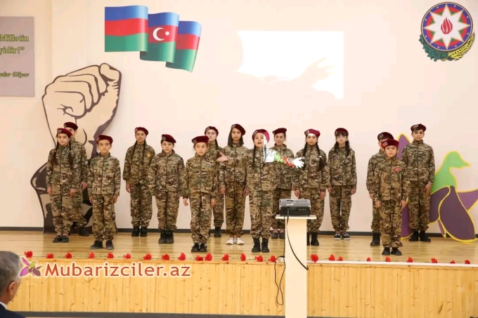 Tədbir ədəbi bədii kompozisiya ilə davam edib, məktəblilər vətənpərvərlik mövzusunda şeirlər söyləyiblər.