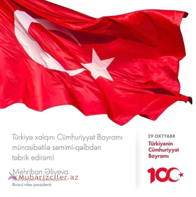 Mehriban Əliyeva Türkiyəni Cümhuriyyət Günü münasibətilə təbrik etdi - Foto 0
