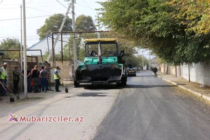 Goranboy rayon Dəliməmmədli şəhərində küçələrin asfaltlaşdırılması işləri davam etdirilir - FOTO 0
