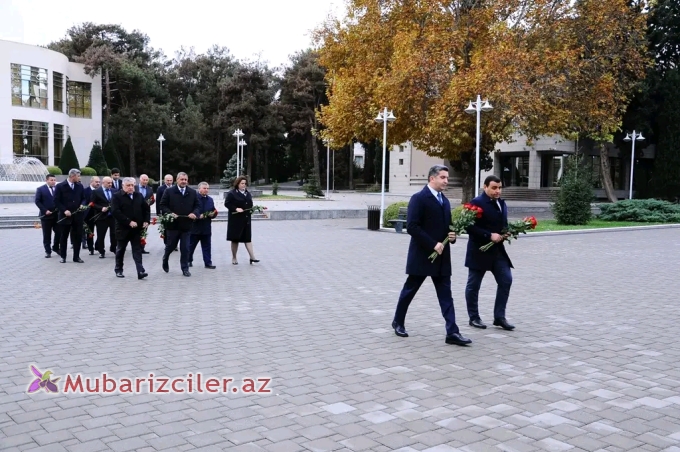 Tədbir iştirakçıları Ulu Öndər Heydər Əliyevin abidəsini ziyarət edib, önünə gül dəstələri düzüb, dahi şəxsiyyətin xatirəsini ehtiramla anıblar.