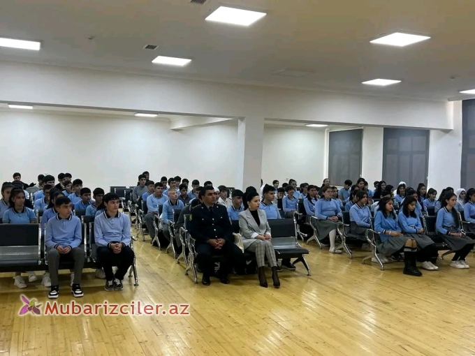 Erkən nikahların fəsadları mövzusunda da çıxış edən şöbə rəisi, məktəblilərə dəyərli tövsiyələr verib və təhsillərində uğurlar arzulayıb. Tədbir zamanı daxili işlər orqanlarında xidmət etmək həvəsində olan məktəblilərə Polis Akademiyasına kursant qəbulu qaydaları ilə bağlı ətraflı məlumatlar da verilib, Polis Akademiyasının tarixi və daxili işlər orqanlarında xidmətin şərəfliliyi barədə də çıxışlar edilib.