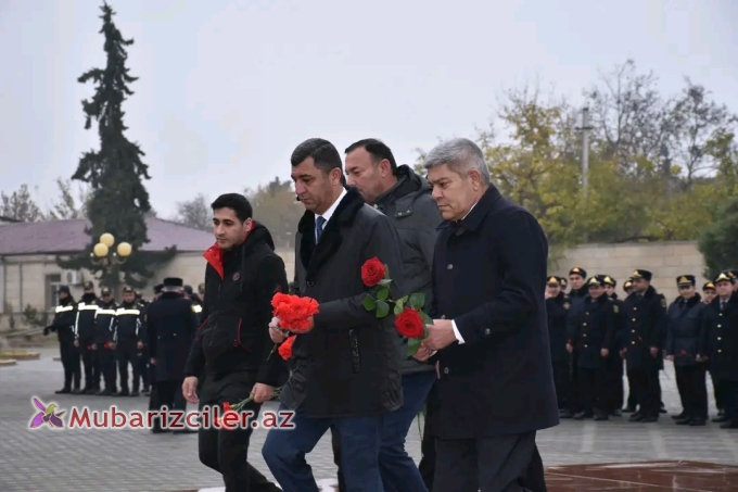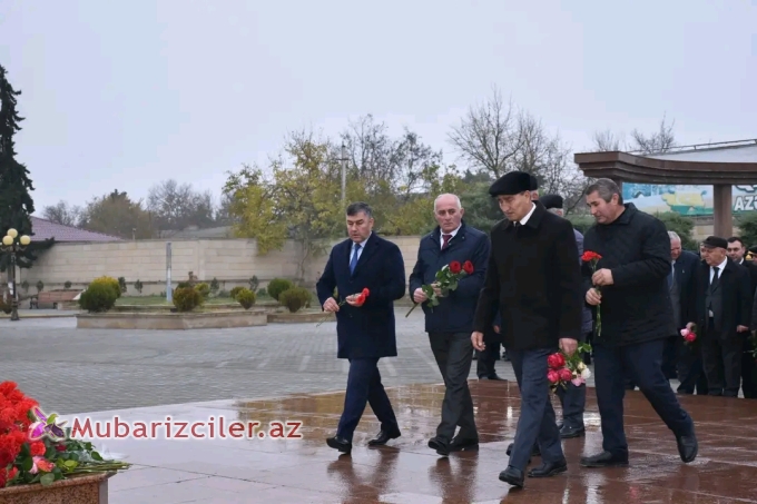 İmişlidə Ulu Öndər Heydər Əliyevin anım günü ilə əlaqədar abidəsi ziyarət olunub - FOTOLAR 0