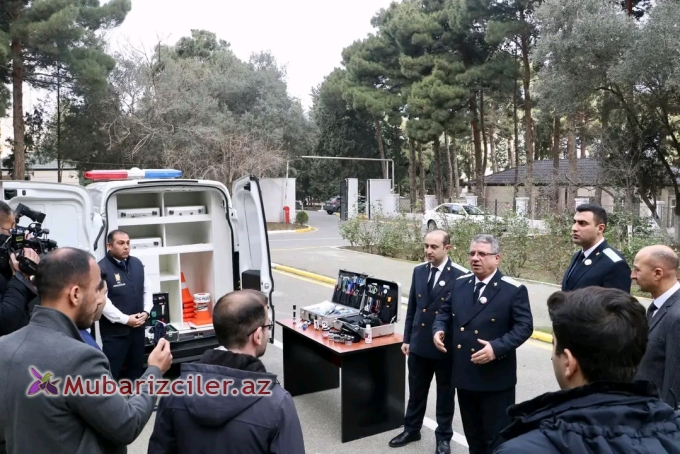 Kriminalistik avtomobil və avadanlıqlarla tanış olan qonaqlara istintaq hərəkətlərinin keçirilməsi zamanı müasir texnikadan istifadənin əhəmiyyəti izah olunub.