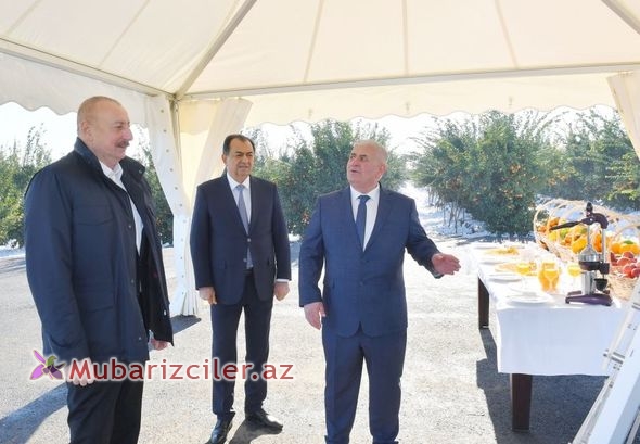 Dövlətimizin başçısı “Lenk Frut” Məhdud Məsuliyyətli Cəmiyyətinin (MMC) Lənkəran rayonunun Separadi kəndində yeni salınmış sitrus bağında yaradılan şəraitlə tanış olub.