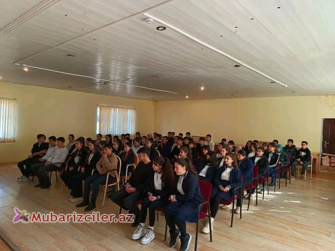 Oğuzda məktəblilərlə görüşlər keçirilib - FOTO 0