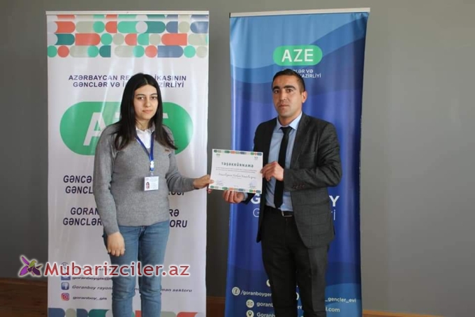 Sonda "Gənclər Günü" münasibəti ilə Goranboy rayonunda Gənclər siyasətinin həyata keçirilməsində fəal iştirak edən aktiv gənclər və könüllülər Təşəkkürnamə ilə təltif olundular.
