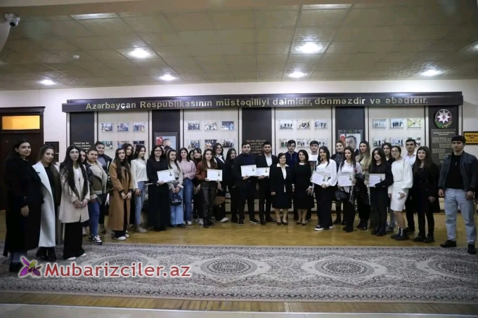 Mubarizciler.az xəbər verir ki, Gəncə Dövlət universitetinin humanitar məsələlər üzrə prorektoru Gülsüm Fətəliyeva çıxış edərək ölkəmizdə gənclər gününün qeyd edilmə tarixindən və Heydər Əliyevin gənclər siyasətindən söz açıb. Fəal gənc Kənan Qurbanov çıxışında Azərbaycanda gənc nəslin mənəviyyatca zəngin , vətənpərvərlik ruhunda tərbiyəsi , hərtərəfli inkişafı və ölkə həyatında fəal iştirakı üçün mühüm zəmin yaratdıgını ,Dövlət başçısı İlham Əliyevin gənclərə göstərdiyi diqqət və qayğını , gənclər üçün hər bir şərait yaradıldığını diqqətə çatdırıb . Bütün gəncləri 7fevral ölkəmizdə keçiriləcək növbədən kənar prezident seçkilərində Yeni Azərbaycan Partiyası/ New Azerbaijan Party vahid namizədi İlham Heydər oğlu Əliyevə səs verməyə çağırıb.