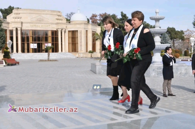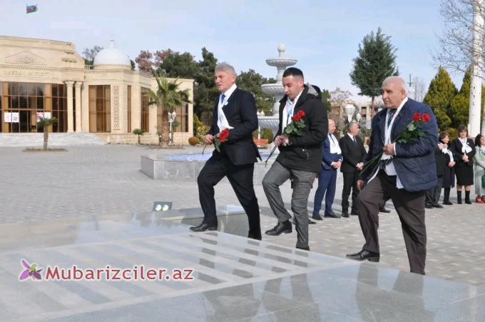 Mubarizciler.az xəbər verir ki, Tədbir iştirakçıları Ulu Öndər Heydər Əliyevin abidəsini ziyarət edib, önünə gül dəstələri qoyub.