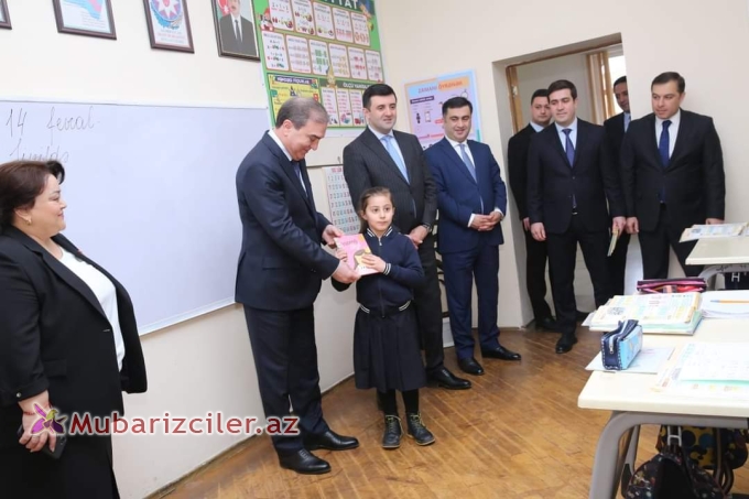Mubarizciler.az xəbər verir ki, Rəsmilər məktəbdə kitab sərgisi ilə tanış olaraq, bir neçə sinif otağında şagirdlərlə görüşüblər. Şagirdlər qonaqlara 14 Fevral - Beynəlxalq Kitab Bağışlama Günü ilə əlaqədar məlumat veriblər. Rəsmilər şagirdlərə kitab hədiyyə ediblər.