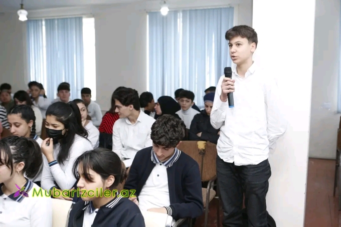 Görüşün sonunda şagirdləri və iştirakçıları maraqlandıran suallar cavablandırılıb.