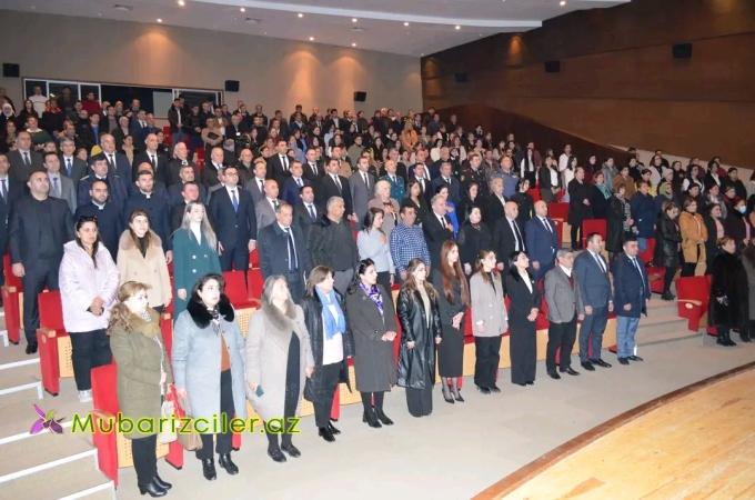 İlk öncə Ulu Öndər Heydər Əliyevin, Azərbaycan Respublikasının ərazi bütövlüyünün, müstəqilliyinin, konstitusiya quruluşunun müdafiəsi zamanı şəhid olan hərbi qulluqçuların və Xocalı soyqırımı şəhidlərinin ruhu bir dəqiqəlik sükutla yad olunub.