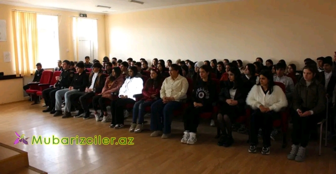 Sonda mövzu ilə bağlı videoçarx nümayiş etdirilib və şagirdləri maraqlandıran suallar cavablandırılıb.
