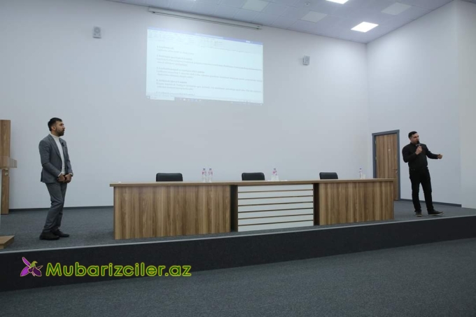 Mubarizciler.az xəbər verir ki, Görüş zamanı Gəncə-Daşkəsən Regional Təhsil İdarəsinin Tədrisin keyfiyyəti sektorunun məsləhətçisi Pərviz Rəcəbov, Gəncə-Daşkəsən Regional Gənclər və İdman İdarəsinin Gənclərlə iş sektorunun baş məsləhətçisi, Gənclərlə iş üzrə beynəlxalq sertifikatlı təlimçi Maarif Quliyev və Azərbaycan Respublikası Gənclər Fondunun təlimçi bazasının təlimçisi, beynəlxalq sertifikatlı təlimçi İlqar Hümbətov qeydiyyat prosesi, ideyaların formalaşması, layihə təklif sənədi və icra sənədlərinin düzgün hazırlanması haqqında ətraflı məlumat veriblər.