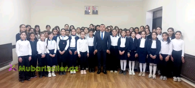 qızların təhsildən yayınmasının onların gələcək həyatlarına mənfi təsiri,erkən nigahın fəsadları baradə məlumat verdi və qarşıdan gələn 8 Mart Beynəlxalq Qadınlar Günü münasibəti ilə bütün şagirdlərə təbriklərini çatdırdı.