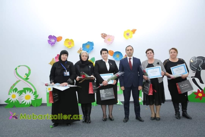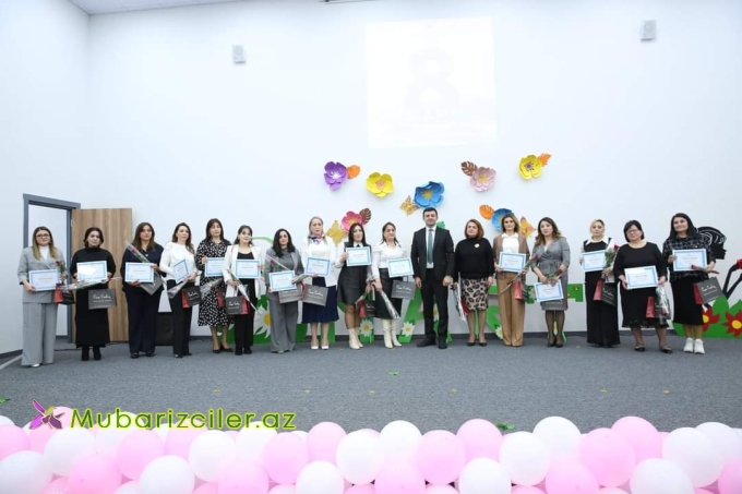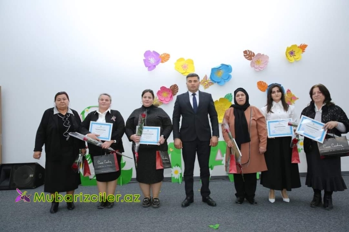 Sonda tədbirdə iştirak edən bir qrup qadın təhsil işçilərinə 8 Mart - Beynəlxalq Qadınlar Günü münasibətilə təltiflər təqdim olunub.