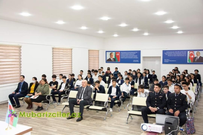Mubarizciler.az xəbər verir ki, Görüşdə RPŞ-nin rəisi, polis polkovniki Nəzər Əsgərov çıxış edərək ölkəmizdə narkotik vasitələrin qanunsuz dövriyyəsi ilə məşğul olan şəxslərə qarşı aparılan qətiyyətli mübarizə tədbirlərindən danışıb. O, bildirib ki, bu qanunsuz əməllə məşğul olan hər bir şəxs hüquq mühafizə orqanlarının əməkdaşları tərəfindən müəyyən edilərək saxlanılır və barəsində qanunvericiliyə uyğun olaraq tədbir görülür. Siz şagirdlər isə belə şəxslərdən kənar gəzməli, digər şəxslərə örnək olmalı və təhsilinizdə daima uğurlar qazanmalısız.