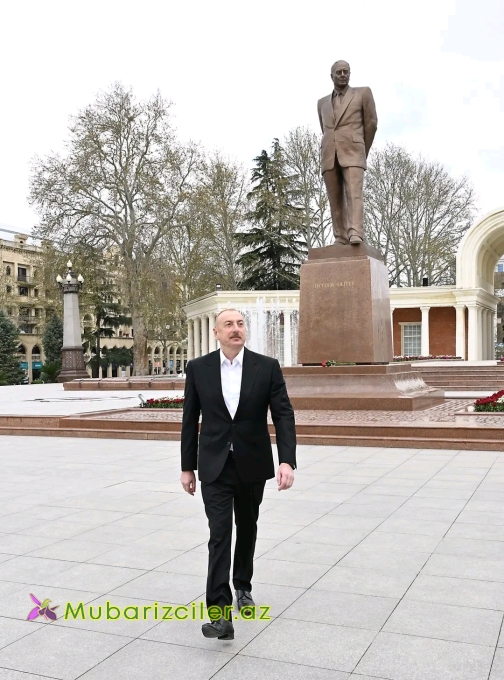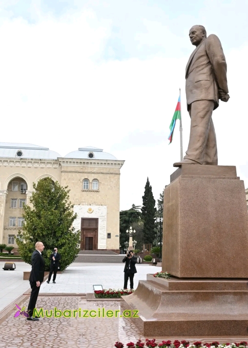 Mubarizciler.az xəbər verir ki, dövlət başçısı ümummilli lider Heydər Əliyevin Gəncə şəhərinin mərkəzində ucaldılmış abidəsini ziyarət edib, önünə gül dəstəsi qoyub.