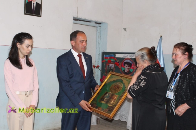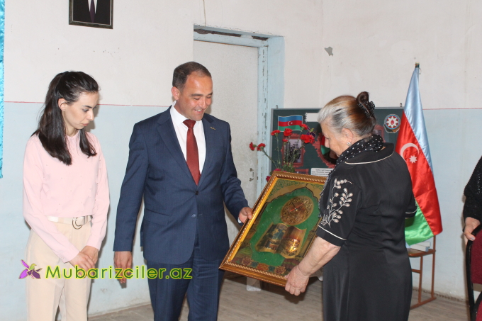 Sonda Şəhid Aqil Talıbovun anası Tellibəyim Talıboya Gəncə - Daşkəsən Regional Mədəniyyət İdarəsinin Goranboy rayonu üzrə nümayəndəsi İsax Hacı oğlu Məmmədovun adından xatirə hədiyyəsi təqdim edildi.