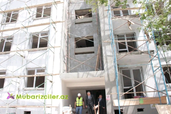 İcra Başçısı Goranboyda 4 mərtəbəli 16 mənzilli yaşayış binalarının tikinti işləri ilə bir daha yerində tanış oldu - FOTO