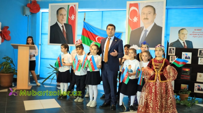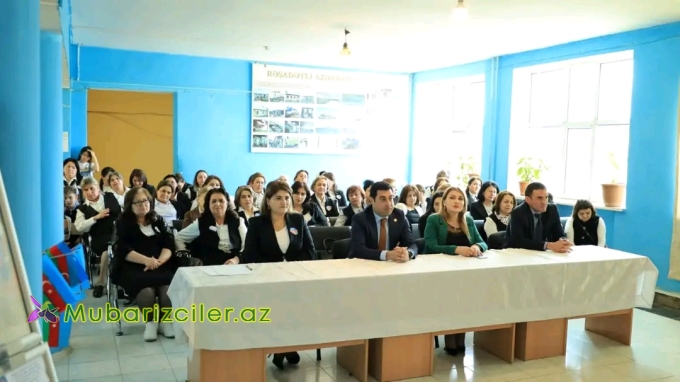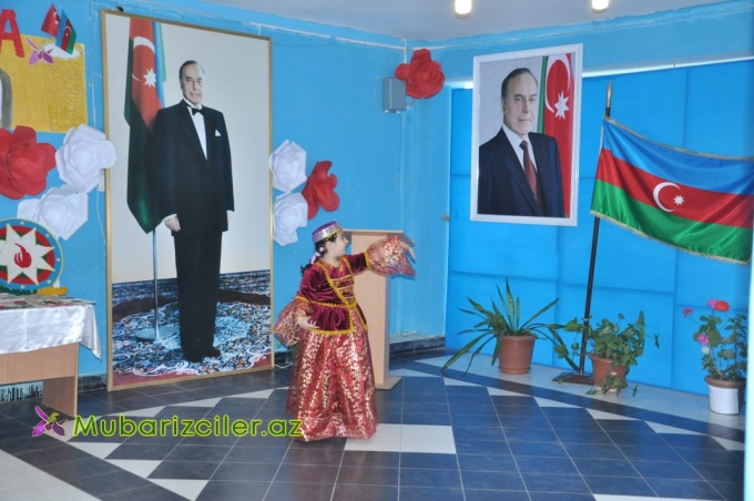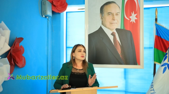 Məktəbin direktor vəzifəsini icra edən İlhamə Qasımova çıxış edərək bildirdi ki, Ulu öndər Heydər Əliyev müstəqilliyimizin ilk dövründə Azərbaycanın gələcək uğurlu inkişafının ideoloji əsaslarını dəqiq müəyyənləşdirib. O, Heydər Əliyevin mənalı ömür yolundan, ən əsası Təhsil sahəsinə vermiş olduğu dəyərdən, dahi rəhbərin hakimiyyətdə olduğu illərdə təhsil işçilərinə fəxri adların, orden və medalların, mükafatların verilməsi, onların adlarının əbədiləşdirilməsi sahəsindəki fəaliyyətindən də söz açdı.