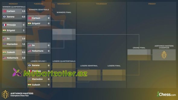 Qarşılaşma Bakı vaxtı ilə saat 20:00-da start götürəcək. Tərəflər 4 görüş keçirəcəklər. Rauf Məmmədov ötən gün ABŞ təmsilçisi Uesli Soya uduzub - 1,5:2,5.