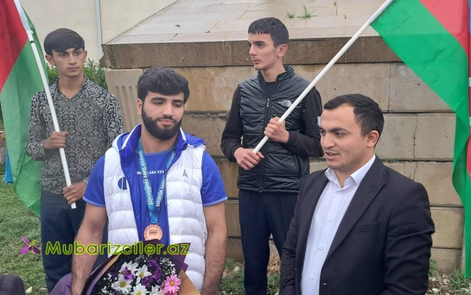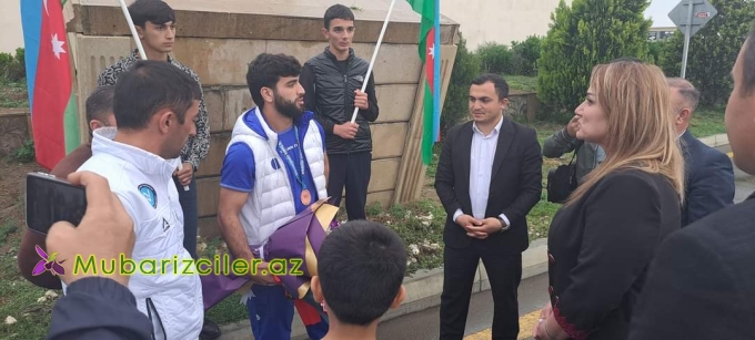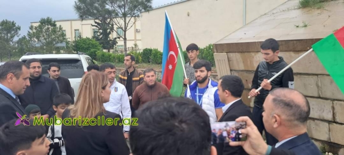 Goranboylu idmançı - Avropa Çempionatının mükafatçısı izdihamla qarşılandı