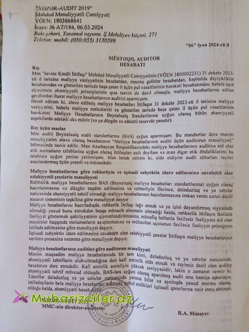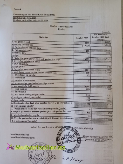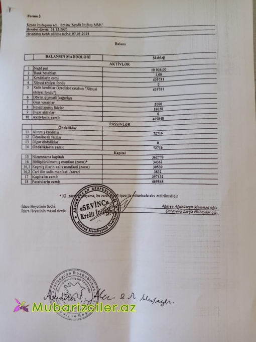"Sevinc kredit İttifaqı" MMC 2023-cü il üçün illik hesabatını açıqlayır.