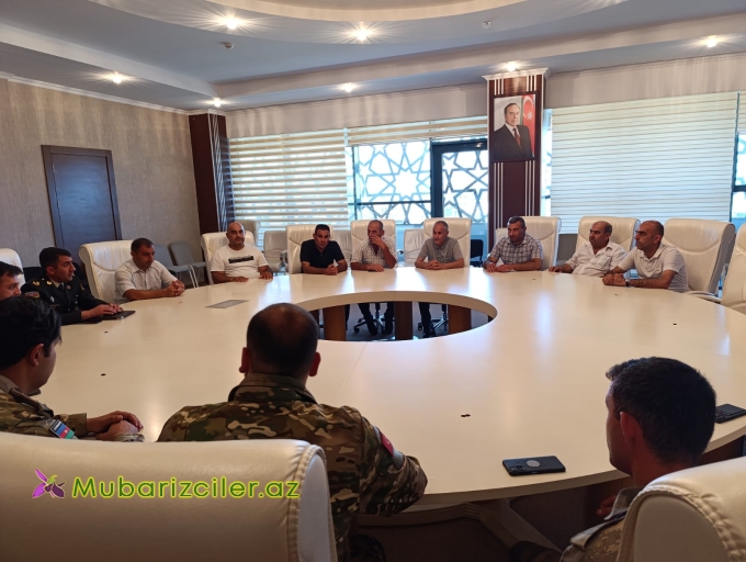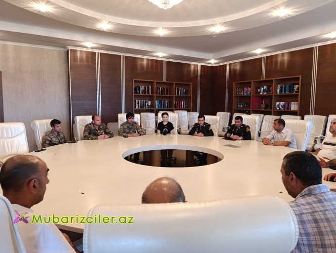 Səfərbərlik və Hərbi Xidmətə Çağırış üzrə Dövlət Xidmətinin Neftçala rayon şöbəsinin məhsul şəxsləri Şəhid ailələri bir qisim qazi və vetiranların iştirakı ilə dəirmi masa ətrafında Insan Resusları mövzusunda səmimi söbət aparılıb. Söbət zamanı Şəhid ailələrinin təklif və narahat edən məsələlər müzakirə olunub eləcə də qazı qardaşlarımız döyüş yolu haqqındaxatirələrini bölüşüb.