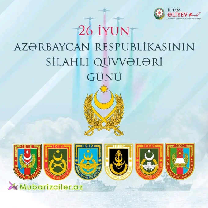 Prezident İlham Əliyev 26 iyun -Silahlı Qüvvələr Günü münasibətilə paylaşım edib.