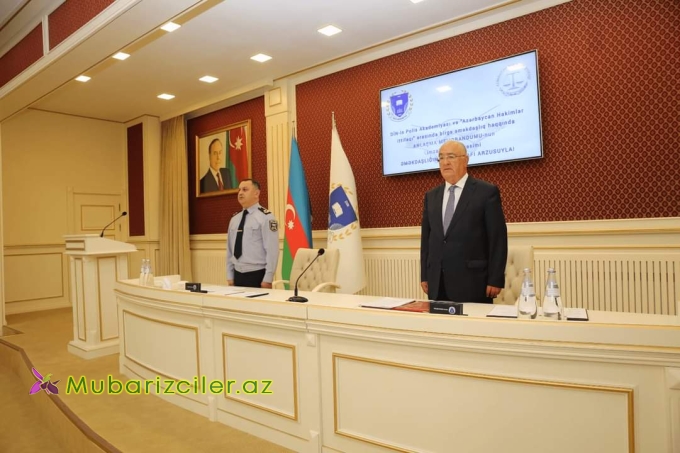 Sonra Azərbaycan Hakimlər İttifaqının sədri Ramiz Rzayev tədbir iştirakçılarını salamlayıb və İttifaqın Polis Akademiyası ilə qarşılıqlı əməkdaşlığından söz açıb. İmzalanacaq Memorandumun bu əməkdaşlığa müsbət töhfə verəcəyini və gələcək fəaliyyətlər üçün yeni bir başlanğıc olduğunu bildirib.