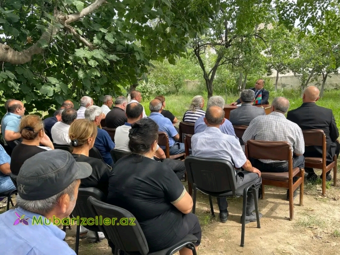 RİH başçısı Azər Qocayev səyyar görüşdə sakinlərə öncə Azərbaycan Respublikasının Prezidenti cənab İlham Əliyev tərəfindən aparılan uğurlu daxili və xarici siyasətdən, xalqımızın tarixinə “Zəfər salnaməsi” kimi yazılan 44 günlük müharibədə qazandığımız Şanlı Qələbədən, həmçinin düşmənə ağ bayraq qaldırtdıraraq qondarama dövlət qurumlarının ləğvinə, ərazi bütövlüyümüzün tam bərpasına səbəb olan lokal antiterror əməliyyatından, uğurla icra edən “Böyük qayıdış” dövlət proqramından, eləcədə əhalinin sosial müdafiəsinə və rifah halının yüksəldilməsinə yönəlmiş dövlət proqramlarından söz açmışdır.