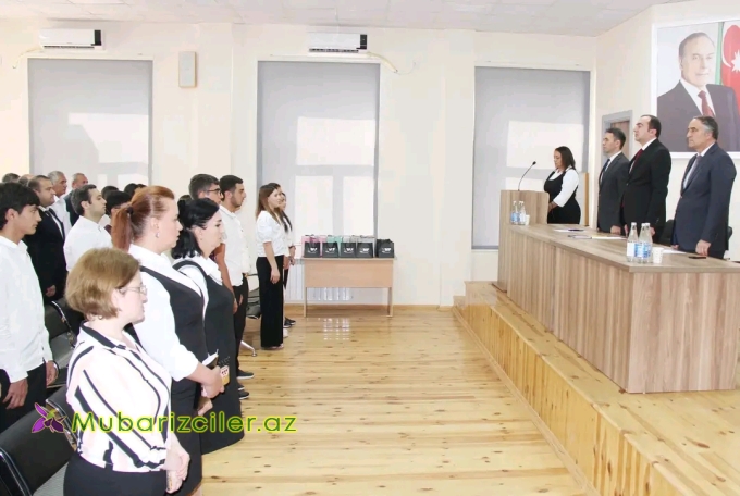 Əvvəlcə Dövlət Himni səsləndirilib, Ulu Öndər Heydər Əliyevin və şəhidlərimizin əziz xatirələri bir dəqiqəlik sükutla anılıb.