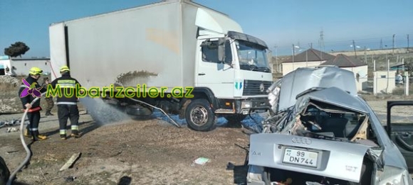 “Belə ki, Şabran rayon sakini, 1992-ci il təvəllüdlü Məmmədov Nicat Kamran oğlu idarə etdiyi “Audi” markalı, 99-DN-744 dövlət qeydiyyat nişanlı nəqliyyat vasitəsində hərəkətdə olarkən idarəetməni itirərək, yolun hərəkət hissəsindən kənarda dayanan “Mercedes” markalı, 99-BB-340 dövlət qeydiyyat nişanlı yük avtomobilinə çırpılıb.
