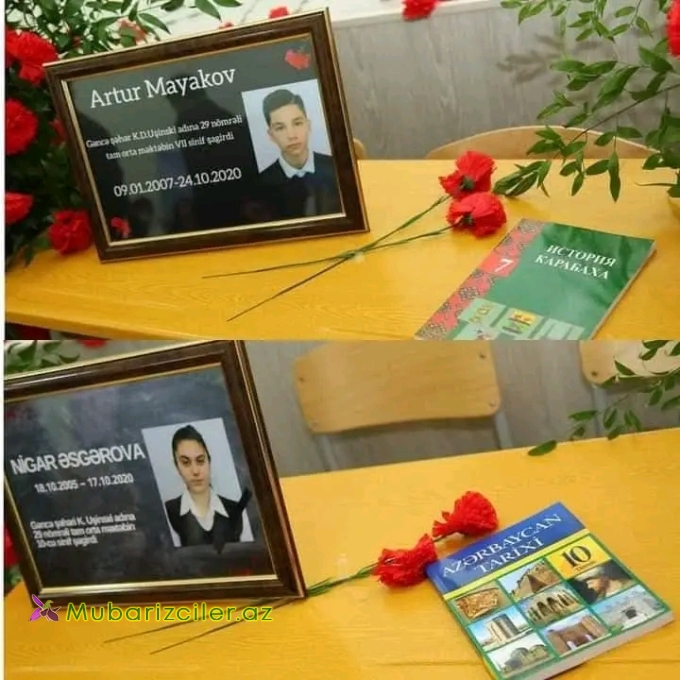 Mubarizciler.az xəbər verir ki, Gəncə terroru nəticəsində 4 nəfər şagird Şəhid olub. Onlar Gəncə şəhər K.D.Uşinski adına 29 nömrəli tam orta məktəbin şagirdləri Nigar Əsgərova, Artur Mayakov, Orxan Xəlilli və Məryəm Xəlillidir.