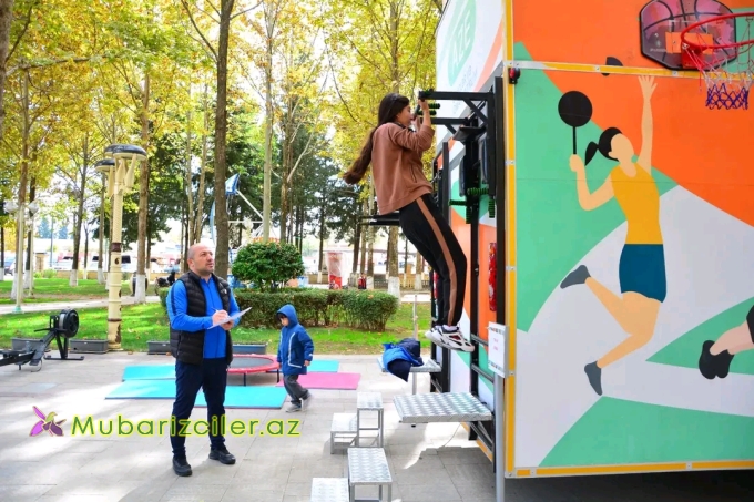 Səyyar idman avtomobilində gətirilən müxtəlif idman növlərinə aid avadanlıqlar və vasitələr parkın ərazisində quraşdırılıb, gənclər müxtəlif idman növlərində - qaçış, voleybol, basketbol, dama, boks və digər yarışlarda öz qüvvələrini sınayıblar.