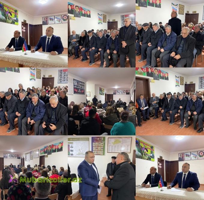 RİH başçısı Azər Qocayev səyyar görüşdə sakinlərə öncə Azərbaycan Respublikasının Prezidenti cənab İlham Əliyev tərəfindən aparılan uğurlu daxili və xarici siyasətdən, xalqımızın tarixinə “Zəfər salnaməsi” kimi yazılan 44 günlük müharibədə qazandığımız Şanlı Qələbədən, həmçinin düşmənə ağ bayraq qaldırtdıraraq qondarama dövlət qurumlarının ləğvinə, ərazi bütövlüyümüzün tam bərpasına səbəb olan lokal antiterror əməliyyatından, uğurla icra edən “Böyük qayıdış” dövlət proqramından, eləcədə əhalinin sosial müdafiəsinə və rifah halının yüksəldilməsinə yönəlmiş dövlət proqramlarından söz açmışdır.