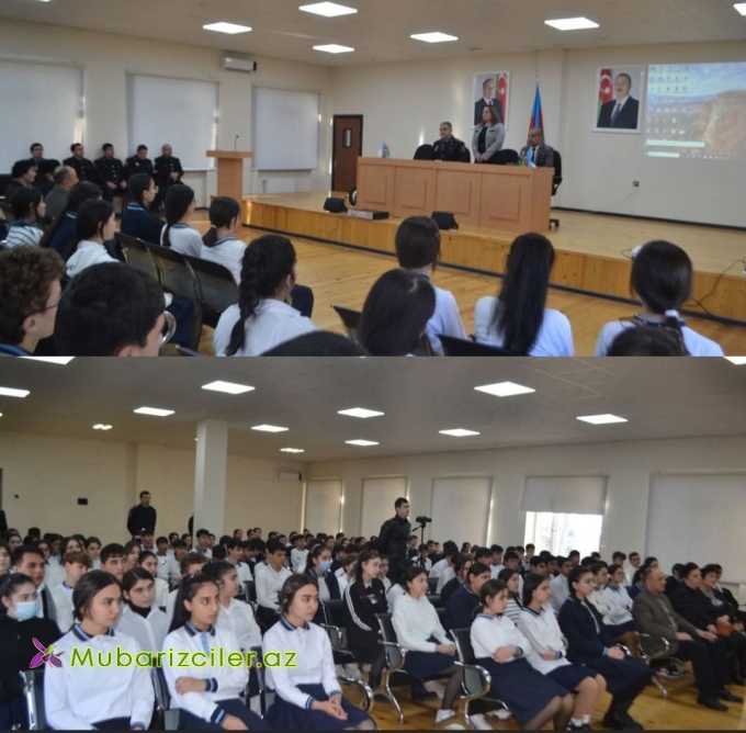 Daha sonra mövzu ilə əlaqəli videoçarx nümayiş olunub və şagirdlərin sualları cavablandırılıb.